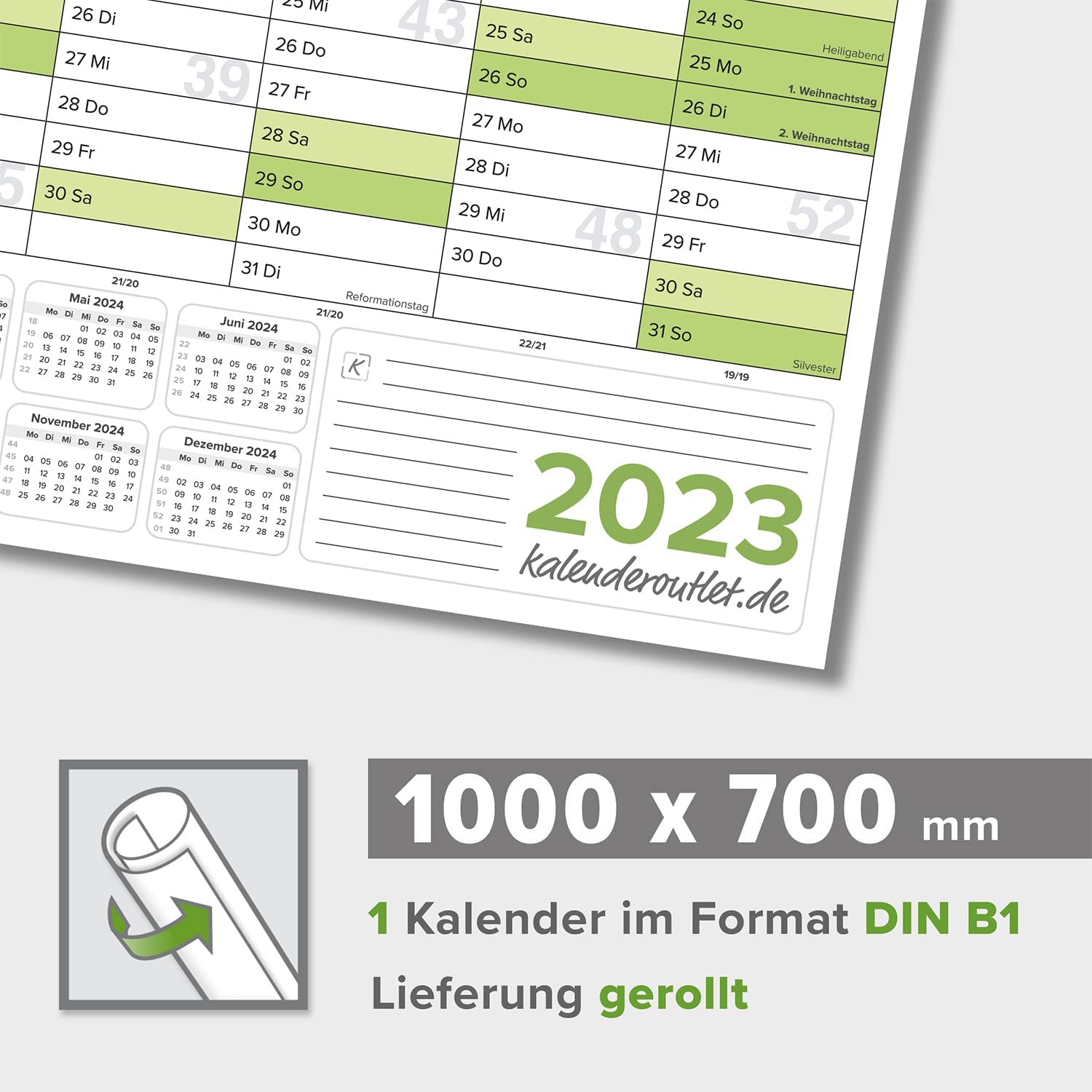 Abwischbarer Wandkalender 2023 Jahresplaner grün Format: 100x70cm – DIN B1- GEROLLT – Wandplaner, Jahreskalender, Kalender, groß korrigierbar Poster Plakat - deutsch