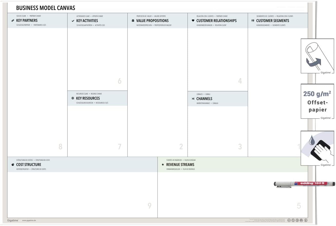 GIGATIME® Busines Model Canvas, Businessplan 140x100cm, feucht abwischbar, inkl. Folienschreiber
