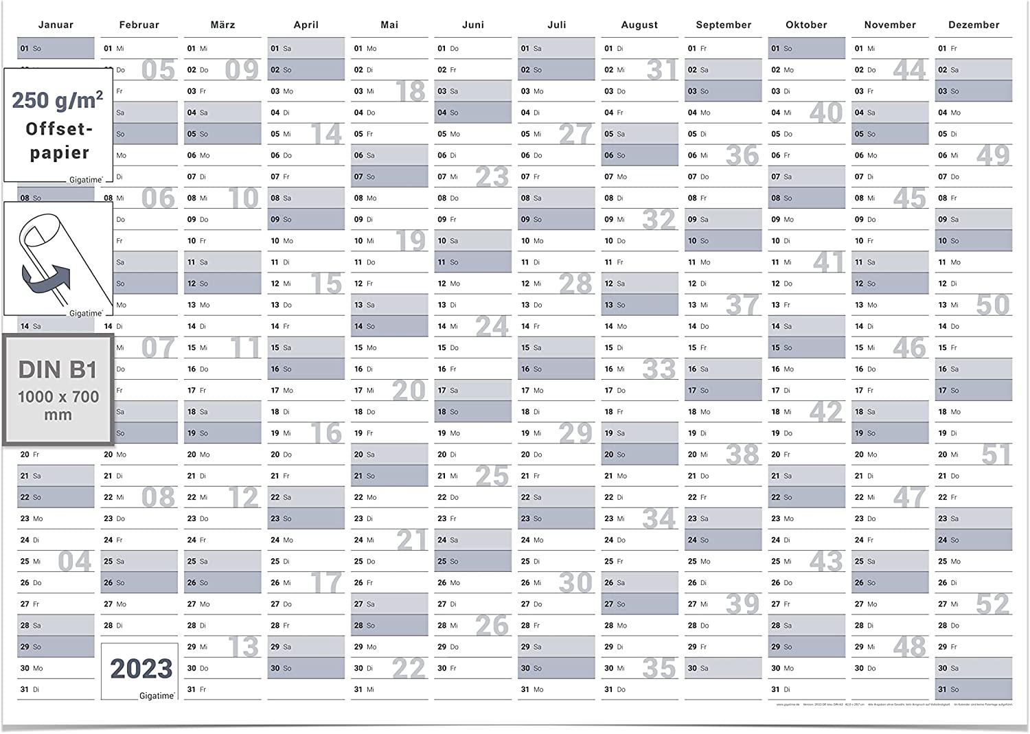 Gigatime Wandkalender Jahresplaner 2023 Format: DIN B1 100,0 x 70,0 cm blaugrau premium Qualität - deutsch